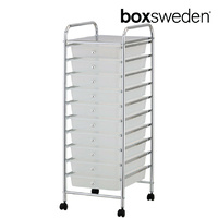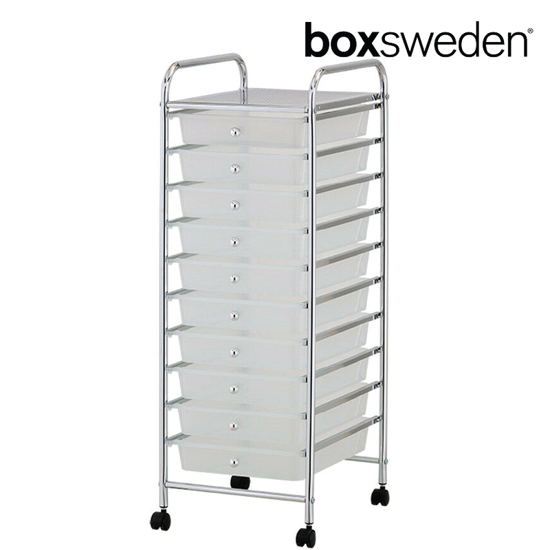 Organise your home or workspace with our Boxsweden Storage Drawer Trolley. Our design features four deep drawers sliding perfectly into the metal trolley frame. Our sturdy metal trolley frame features wheels for easy relocation- Perfect for storing all household, bathroom, and office storage.
