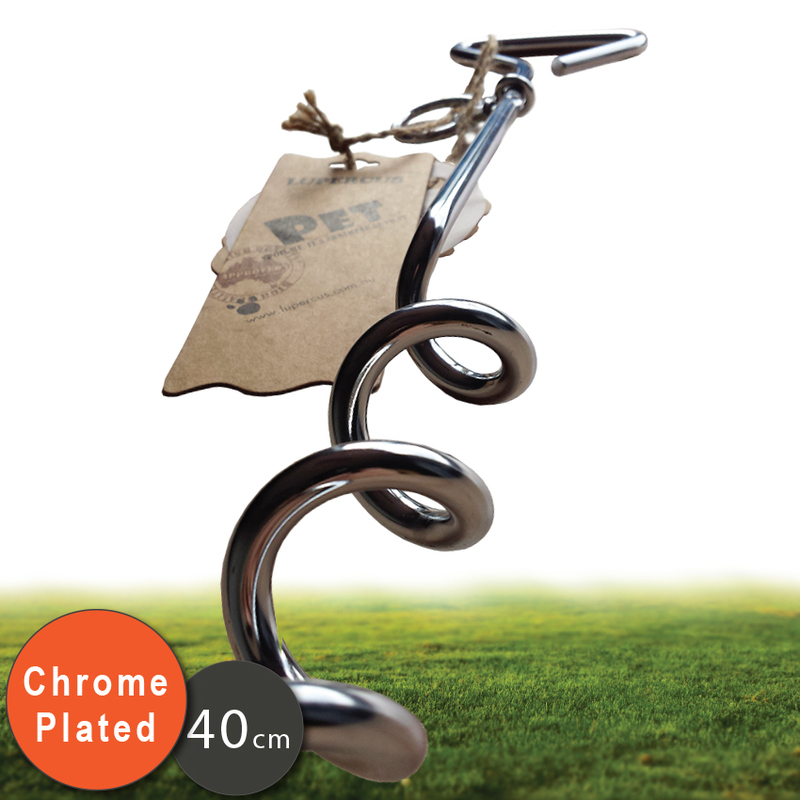 Quality Spiral tie out stake for you and your pet to experience a carefree travel experience. Lupercus dog tie out stake is chrome plated for corrosion protection and easy cleaning, simple wipe/rinse off the mud after use.