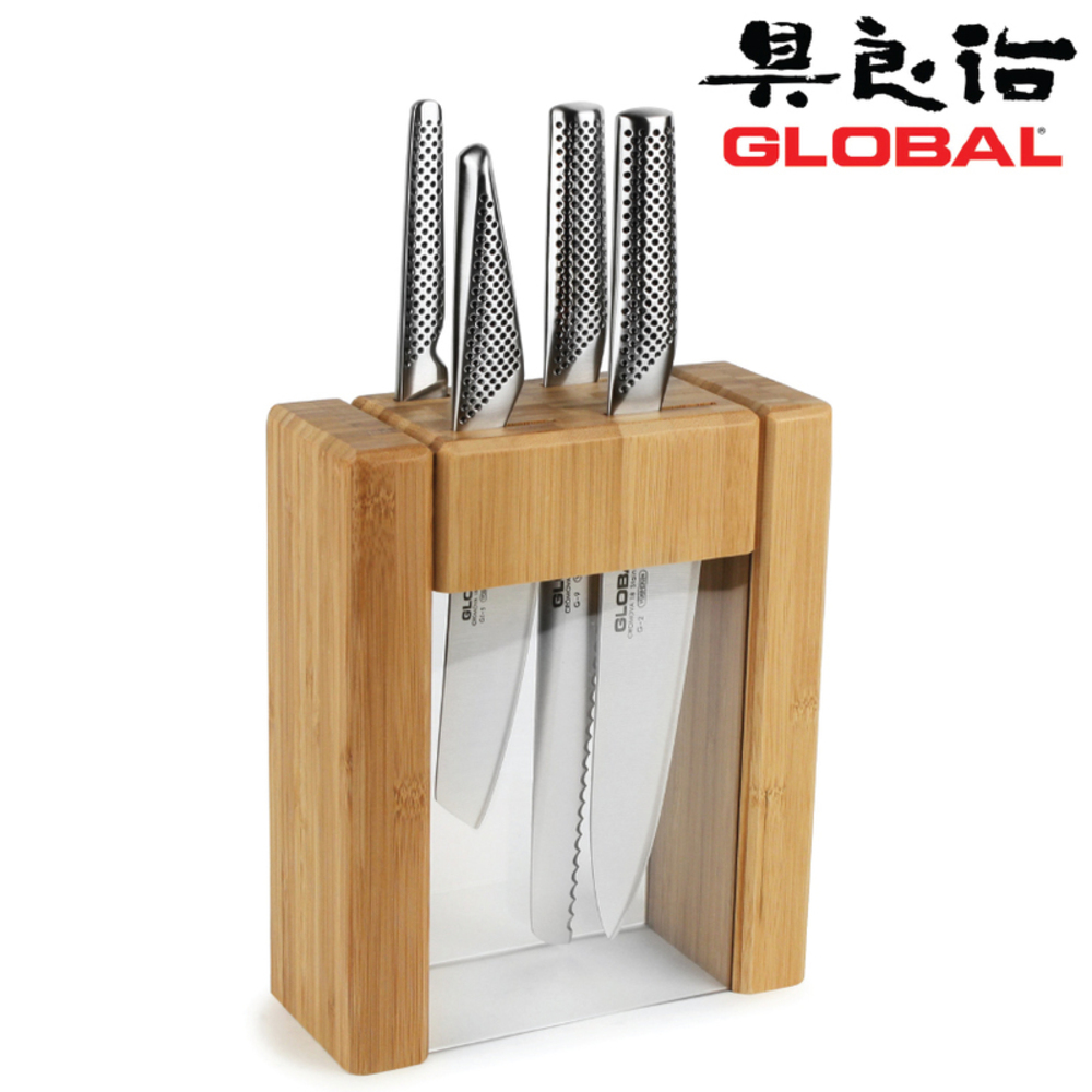 Whether you're looking to boost your kitchen's aesthetics or to fully pursue your culinary dreams, the Global IKASUV Knife Block Set will be the perfect extension for your capable hands. This impressive set comes with 4 stainless steel knives which have been carefully selected for daily food preparation.