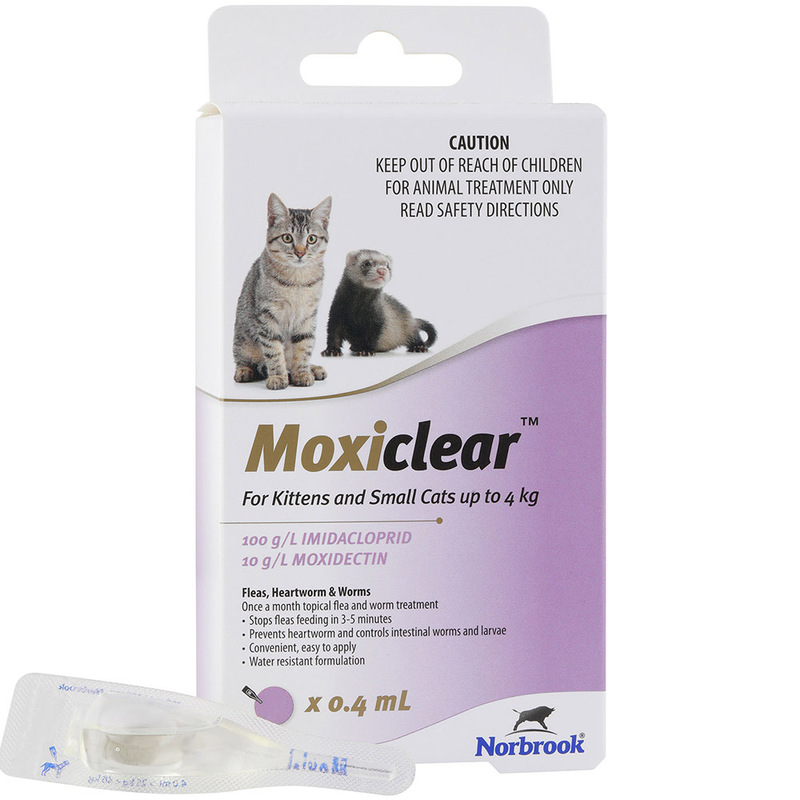 Moxiclear’s combination of Moxidectin and Imidacloprid has been shown to be safe in kittens when given from 9 weeks of age.