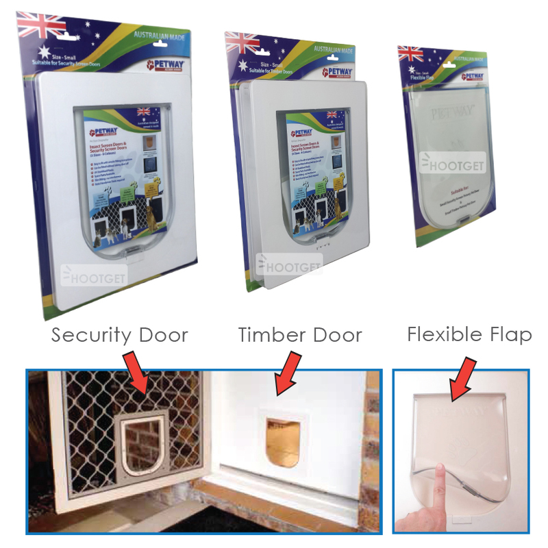 PETWAY Security Door + Timber Door + Flexible Flap Combo Set an all in one combo pack. This pack is including all you need to setup your security and timber doors simultaneously.