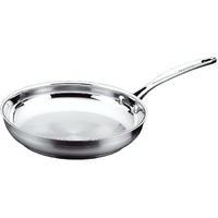 This frypan is constructed from heavy gauge 18/10 stainless steel and impact bonded to a thick steel-clad base with a 5mm aluminium core that provides even, steady heating on all cooking surfaces, including induction. This frypan features a stylish two-tone mirror finish, rugged stainless steel handles for everlasting durability.