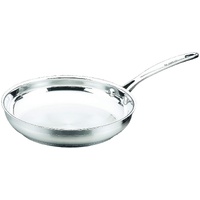 This frypan is constructed from heavy gauge 18/10 stainless steel and impact bonded to a thick steel-clad base with a 5mm aluminium core that provides even, steady heating on all cooking surfaces, including induction. This frypan features a stylish two-tone mirror finish, rugged stainless steel handles for everlasting durability.