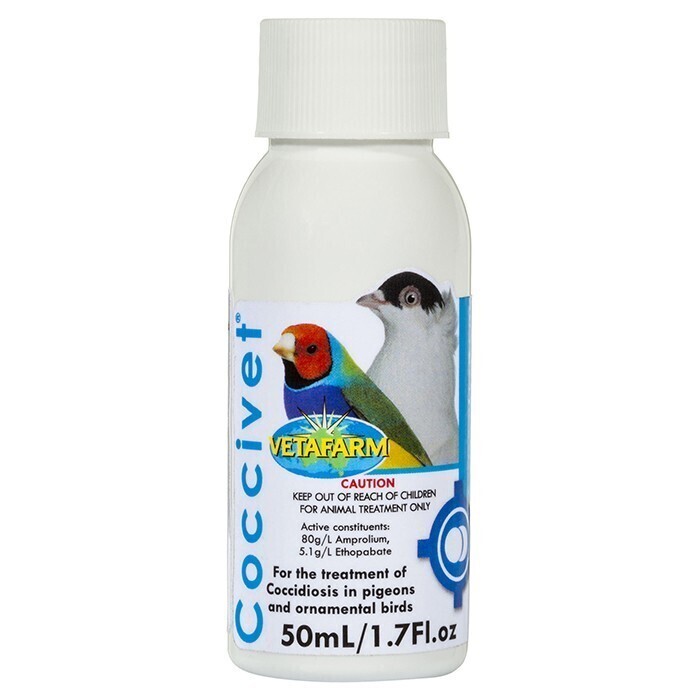 Coccivet is a dual active, Coccidiosis treatment for use in pigeons and ornamental birds.